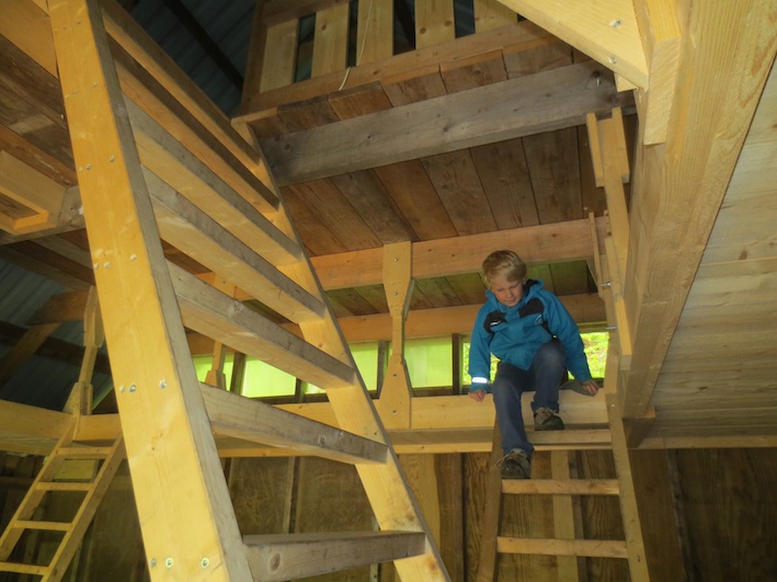 Når kvelden kommer blir det godt å legge seg til å sove i en av gapahukene. Alle med gulv, tak og 3 vegger, men ingen dør. På den måten sover du både ute og inne samtidig. Og alle lyder fra skogen har du rett ved der du sover. Ett av husene kalles Kråkeslottet, og ligner også ett.....