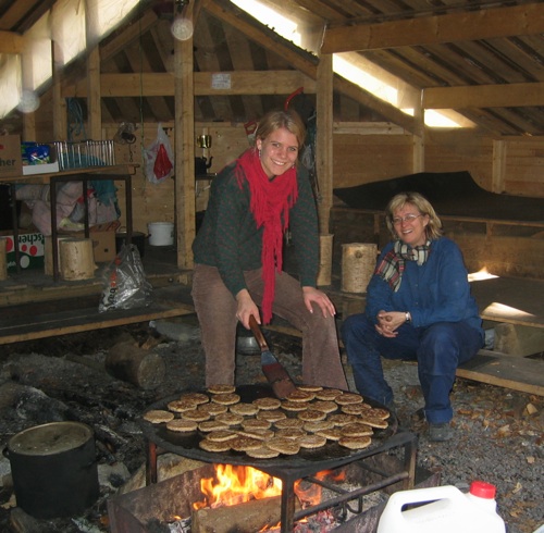 Maten varmer vi på forskjellig vis. Enten som karbonader på takke, lapper på takke (takka er en gammel jernplate - se bilde), pinnebrød, pølser på pinner, suppe over bål el.l. Maten smaker så ekstra godt når en spiser ute. Det blir en kjempesosial aktivitet. Særlig når vi forteller historier til, eller deltakerne selv forteller vitser, gåter eller historier.