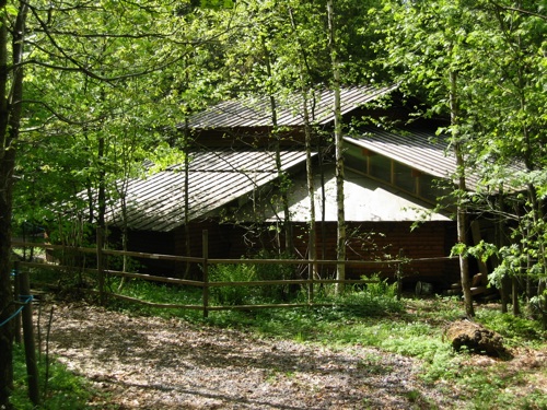 Her i Aarholt-skogen litt over en kilometer fra gårdstunet, går en elv hvor det også er mye spor etter beverens herjinger. Navnet ”Aarholt” kan antagelig komme av ”Holtet ved Aaen – elva”. Og i kort avstand fra elva finner du Villmarkstunet. Et område med små gapahuker for overnatting og en MEGA-huk for grilling, kveldskos, og overnatting. De ti små gapahukene kan huse 30 stk. til sammen, og MEGA-huken (bildet over) – 30 alene til overnatting eller 60 til bespisning inne rundt bålet - hvis det regner ute. MEGA-huken er sannsynligvis ulikt alt annet du har sett. Med syv takretninger, overbygget bålplass i midten og gulvplass som i et slags amfi - til å sitte og kose seg på. Alle gapahukene har liggeunderlag på gulvet.